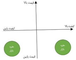 در شکل زیر محصول شرکت های رقیب مشاهده می کنید. حفره های بازار کدام شکل است؟ (2 نمره)